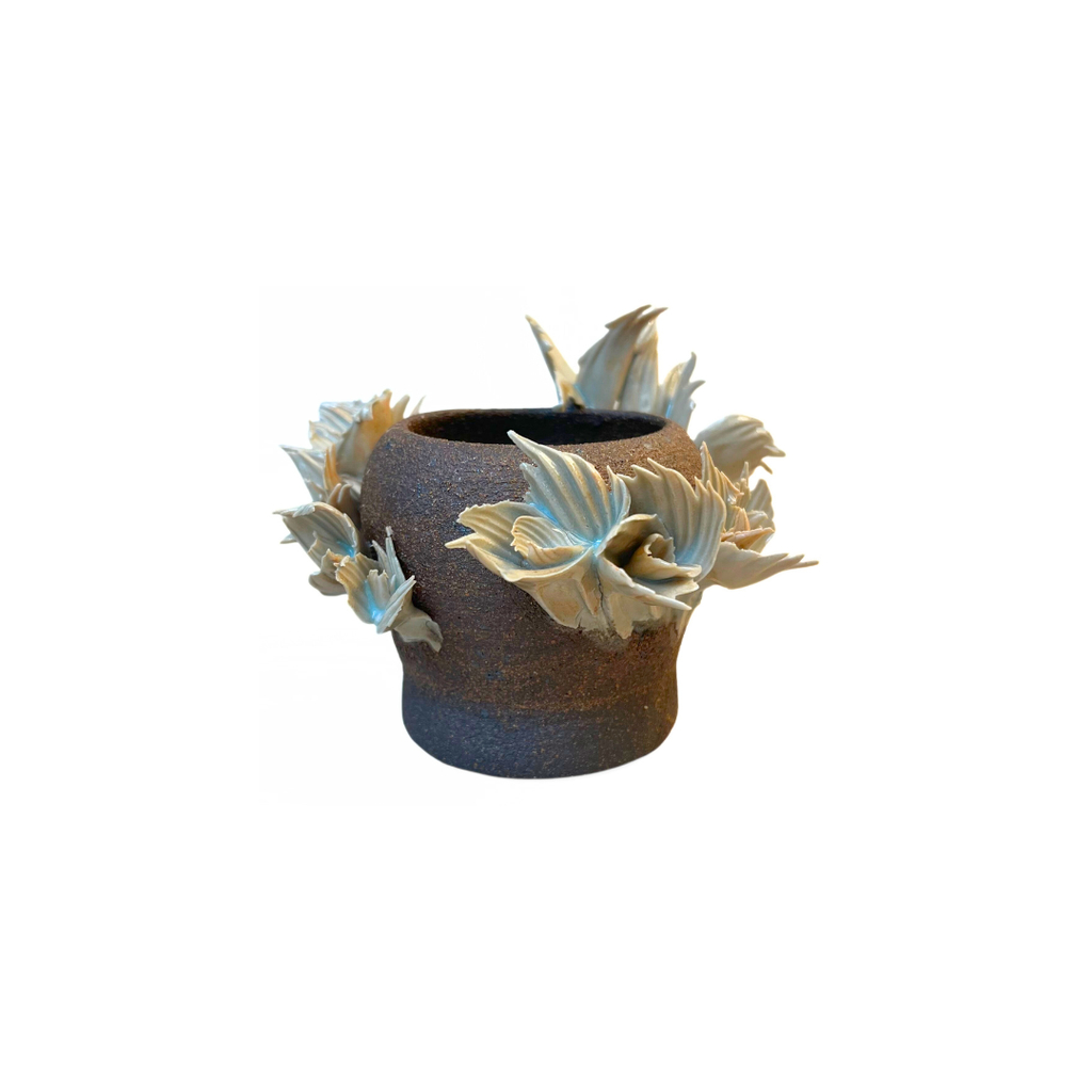 THROWN BOWL WITH HAND-BUILT FLORAL DETAILS
