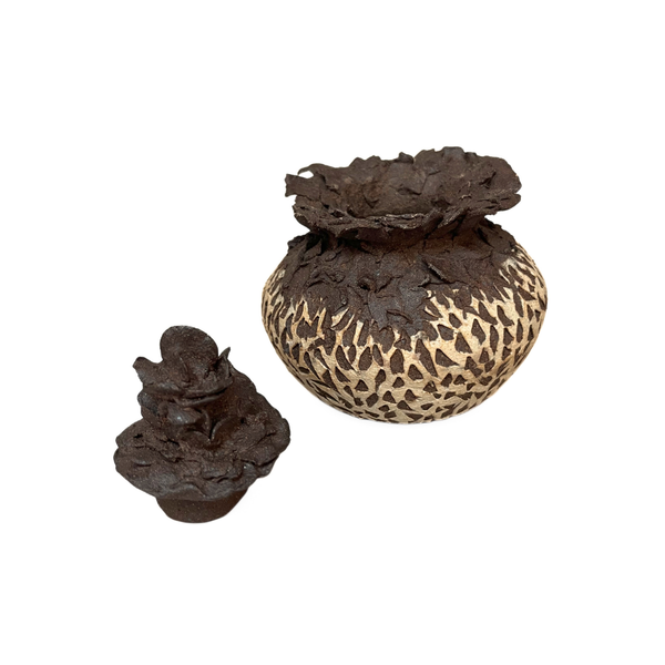 Sgraffito Vase with Pinched Lid by Sally Terrell